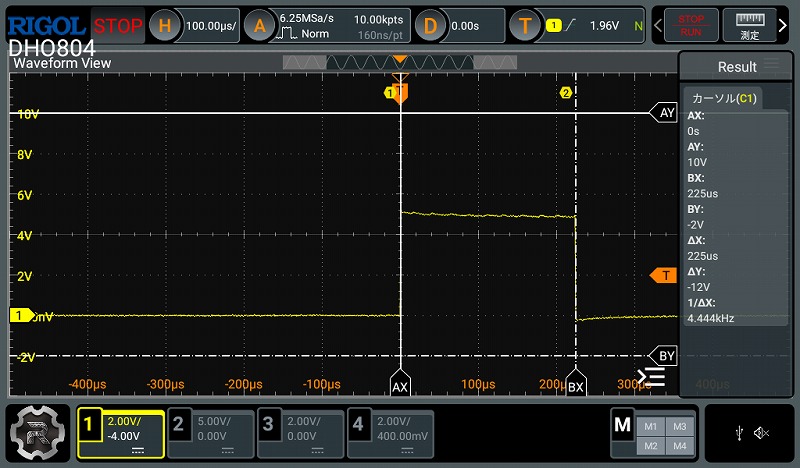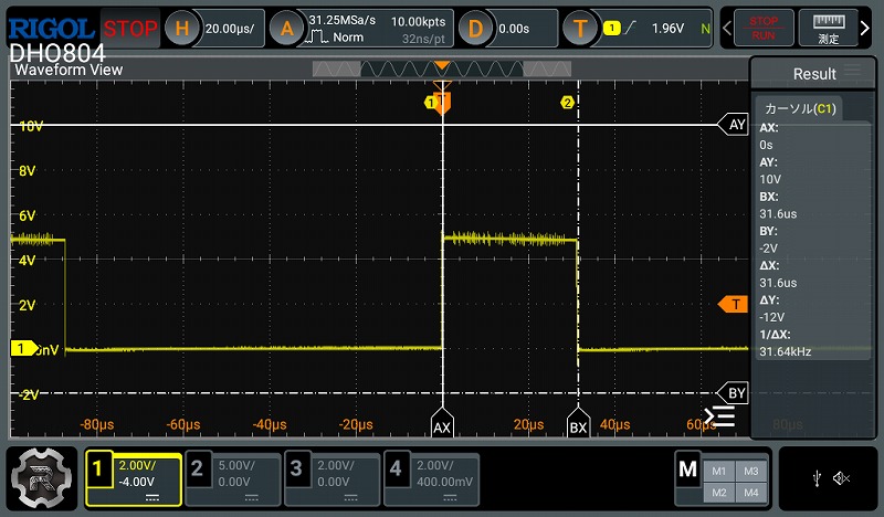 最近、9年使ったテクシオのオシロスコープ GW-INSTEK GDS-1074Bが壊れました。修理料金の見積もりを取ったところ、定額で45,000円(税別)とのことだったので、10万円で購入して9年使ったものに5万はなぁ・・と、買い換えることに。いくつかの候補を検討の結果、RIGOLのDHO804を購入。電源を入れてからの起動時間が結構掛かるのが難点ですが、普段使いには十分な性能です。VESAマウント対応なのでディスプレイ用のアームに取り付けて使っています。