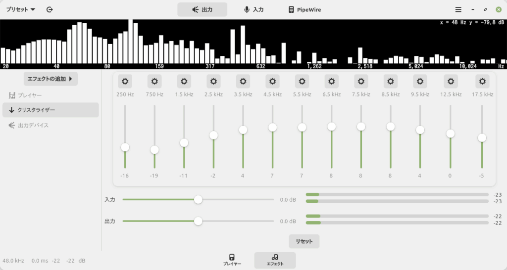 DELLのこの機種は2台あるので、同じようにLinux をインストールして予備機としておいておくことにしました。1台にはしばらく使わずに廃棄処分の予定だったONKYOのパワードスピーカDP-M1をつないで音も出せるようにしましたが、このスピーカー、音域がフラットでは無く低音域が強く少々不快な音なので、イコライザーとしても使える「EasyEffects」をインストール。これで低音域を少し落としてやることで聴きやすい音になりました。